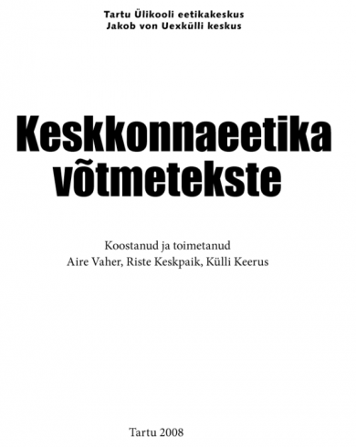 Keskkonnaeetika sünd iseseisva filosoofiadistsipliinina 1970ndate aastate algul on lahutamatult seotud keskkonnaprobleemide teadvustamise ja üldise keskkonnateadvuse tekkimisega 1960ndate teises pooles. Koos ettekujutuse tekkimisega ökoloogilisest kriisist, mis ohustab inimkonna edasikestmist talle omases keskkonnas, tekib ka sügavalt tunnetatud vajadus muuta keskkonnaga ümberkäimist. Käesolev kogumik sisaldab väikest valikut tõlkeid keskkonnaeetika distsipliinile aluse pannud tekstidest: Aldo Leopoldi „Maa eetika”, Lynn White’i „Meie ökoloogilise kriisi ajaloolised juured”, Richard Sylvani „Kas on tarvis uut eetikat, keskkonnaeetikat?” ja peatükki „Kõik loomad on võrdsed” Peter Singeri raamatust Animal Liberation („Loomade vabastamine”).